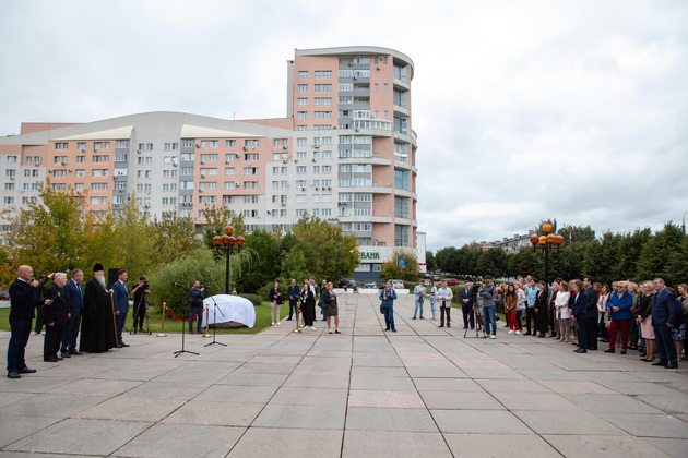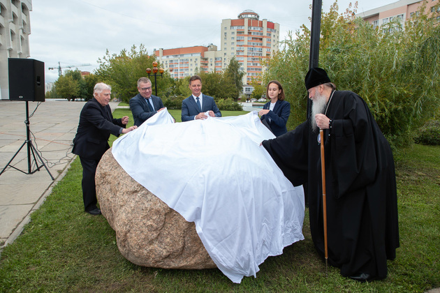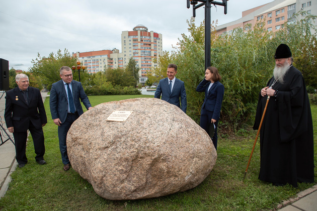 Губернатор Владимирской области Владимир Сипягин вместе с митрополитом Владимирским и Суздальским Тихоном, зампредом Законодательного Собрания Дмитрием Рожковым, председателем региональной организации ветеранов Николаем Шмуратко и юной изобретательницей из «Кванториума», восьмиклассницей Софьей Трофимовой приняли участие в закладке камня с символической капсулой времени внутри, а в ней - послание к потомкам.