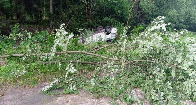 От удара легковушка вылетела в кювет и перевернулась. Травмы получили водитель и трое его пассажиров. От госпитализации пострадавшие отказались.