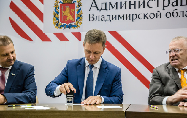 - Впервые во Владимирскую область приехало так много гостей федерального уровня! Владимир – это одна из древнейших столиц! Лет через 25 эти открытки будут стоить миллионы рублей! Особенно с подписью Владимира Сипягина, да и моей тоже, - заметил лидер ЛДПР.