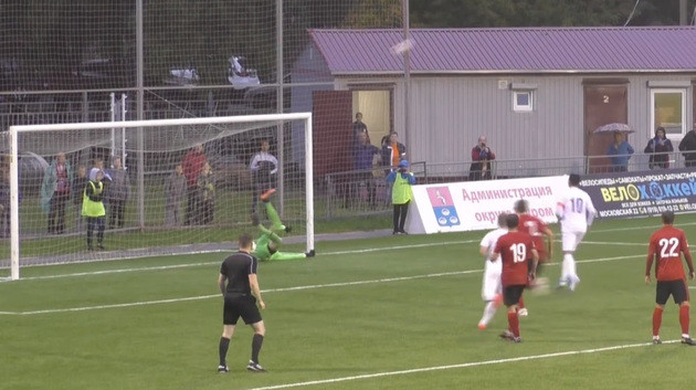 А под конец первой половины встречи судья усмотрел повод для одиннадцатиметрового удара в муромские ворота, хотя повод был сомнительный. Талантливый голкипер «Мурома» Сергей Бородин проявил свою чудесную реакцию и в самоотверженном броске рукой отбил мяч с пенальти!