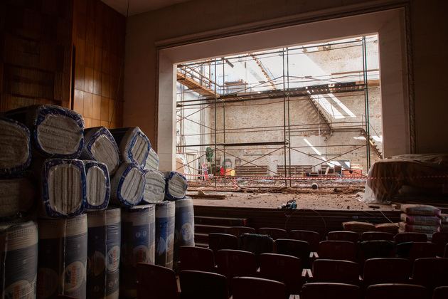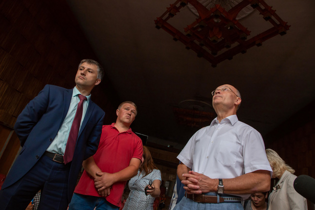 Спикер своими глазами убедился, что работа по замене балок в самом разгаре. Местные власти очень благодарны АВО и законодателям — деньги (больше 15 млн) появились благодаря изменениям в областную программу «Развитие культуры и туризма Владимирской области», позволившим участвовать в ней городам, где численность выше 50 тысяч жителей. Кстати, за это местный хор ветеранов поблагодарил Киселёва песней, исполненной прямо возле ремонтирующегося ЕСКЦ. Следующим этапом возрождения клуба должен стать ремонт фасада — уже есть проектно-сметная документация.