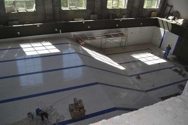Высокими темпами идет реконструкция спортивного долгостроя в Гусь-Хрустальном - спорткомплекса им. А. В. Паушкина с бассейном. Реконструкцию начали в 2018 году, срок окончания работ по контракту – январь 2020 года. Но строители работают интенсивно и, возможно, объект сдадут досрочно – в декабре 2019 года.