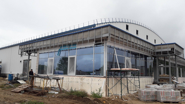Строительство крытого катка в Судогде идет по графику, на данный момент техническая готовность объекта составляет уже 80%.