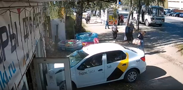 3 сентября в Коврове Яндекс.такси вылетело с проезжей части на тротуар и протаранило магазин, едва не сбив девушку.