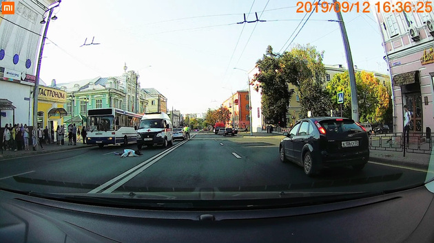 Происшествие случилось около 16.00 12 сентября на улице Гагарина во Владимире. Водитель мотоцикла совершил наезд на пенсионерку, пересекавшую проезжую часть в месте, где ранее находился пешеходный переход. Женщина скончалась. Личность водителя мотоцикла не установлена. (Видео 18+)