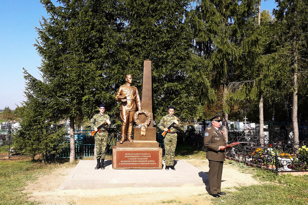 С инициативой установить памятник выступил местный житель, полковник, профессор Академии военных наук Дмитрий Белоусов. Собирали на монумент всем миром, кроме того, привлекли спонсоров.