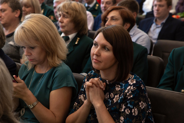 Врио первого заместителя губернатора Максим Брусенцов выразил сожаление, что актовый зал техникума слишком мал, чтобы вместить в себя все 1,5 тысячи тружеников, занятых в государственном секторе лесной отрасли, поблагодарил их за то, что свою работу они «выбрали сердцем», что сохраняют для всех нас красоту лесов, куда большинство людей только приходит в гости, и пожелал идти «только вперёд», ведь дело их — одно из самых благородных...