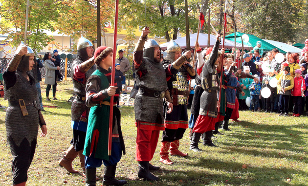 А тем временем зазывали с «улиц» – экспозиций семи сельских поселений: «Там, где печка, есть ухват, этому ведь каждый рад! Мы с ухватом поиграем и играть вас приглашаем! Задача простая: берем чугунки и кто быстрее до печки добежит». И граждане, никогда не державшие в руках ухваты, подхватывали горшки с картошкой и несли их в печь. «Вот как они стараются, а говорили, что не справятся!»
