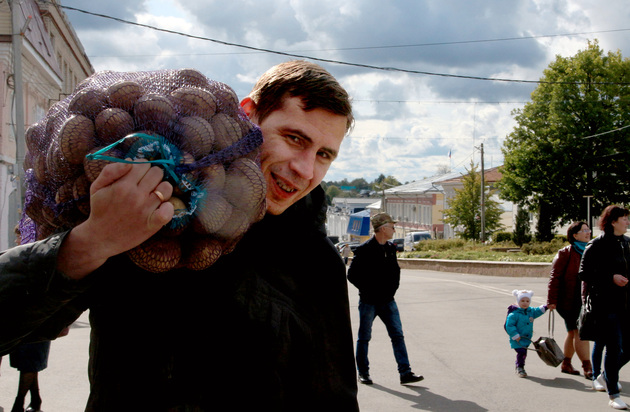 Парочка китайских туристов во все стороны таращила глаза и щелкала своими «кэнонами». В Центральном парке было не протолкнуться, можно сказать, что здесь картошке было негде упасть. Небывалый урожай картофеля вырастили в этом году в Меленковском районе, рекордный – невиданный не только в нашей области: до 500 центнеров с гектара!