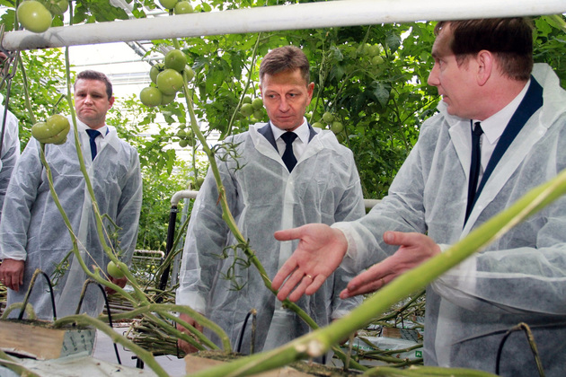 Владимир Сипягин осмотрел производственные мощности ГУП «Тепличный». Глава региона обратил внимание на то, в каких условиях и как выращиваются огурцы и томаты. Часть теплиц комбината (14,2 га) построены более 40 лет назад и нуждаются в модернизации, сообщил директор предприятия.