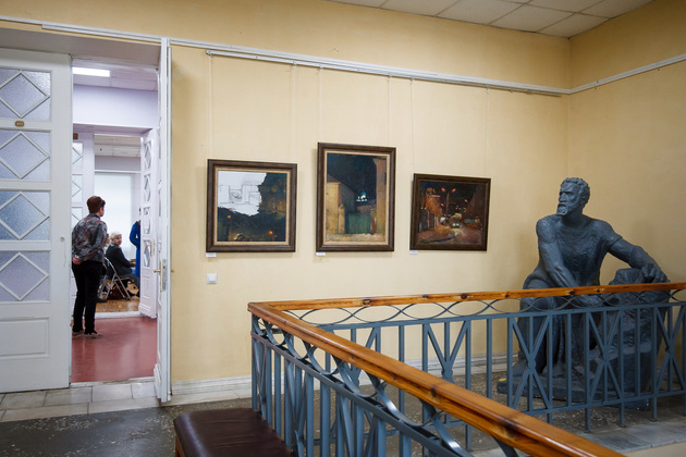 Вообще многожанровые выставочные экспозиции всегда привлекают наибольший интерес. Такое соседство не случайно. Тем более что публике предлагают пройти по местным улочкам: в урбанистических пейзажах угадываются центральные улицы областного центра, Спасская, Большая Московская, Девическая. Особую атмосферу создают оранжевые огни осенних переулков, тяжелый и туманный воздух темных сырых аллей, - неудивительно, что местные поэты, вдохновленные увиденным, слагают поэтические строки.