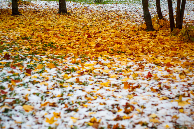 6 октября во Владимире выпал первый снег. Деревья к этому времени еще не успели сбросить листву. Картину встречи осени и зимы снял для вас Владимир Чучадеев.