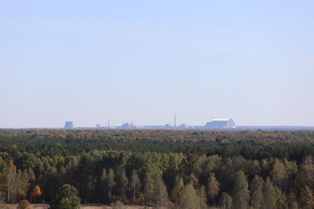 Конечная точка нашего тура - научно-исследовательская станция Масаны. В туристические маршруты Масаны не попали: слишком близко от реактора, всего 8 километров. С вышки в ясную погоду можно рассмотреть саркофаг четвертого энергоблока ЧАЭС. До украинской территории несколько сотен метров: «Вон там за леском - Украина».