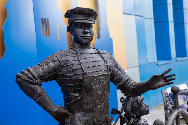 Скульптурная группа установлена перед фасадом главного административного здания предприятия на Большой Нижегородской.