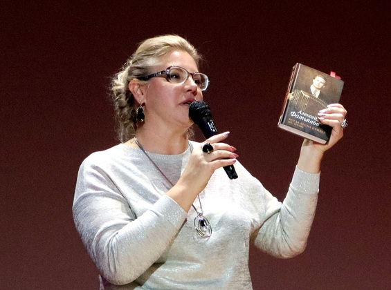 Наконец, микрофон взяла внучка нашего знаменитого поэта. Анна Китина-Фатьянова сказала, что фильм «Песен без России не сложить. Алексей Фатьянов» был создан благодаря «министерству культуры», которое представляет Алиса Михайловна (Бирюкова, директор департамента культуры Владимирской области – ред.), бывшему губернатору Светлане Орловой и министерству культуры РФ.