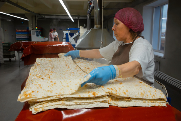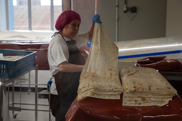 Тот самый корпус, в котором в годы войны выпускался драгоценный хлеб из обойной муки, сейчас один из самых реновированных на владимирской площадке. На втором этаже здесь расположился цех национальных хлебов, где пока производится только один вид продукции - «Армянский лаваш». Хотя у менеджмента предприятия есть планы увеличивать ассортимент. Но пока работники по праву называют этот цех «лавашным».