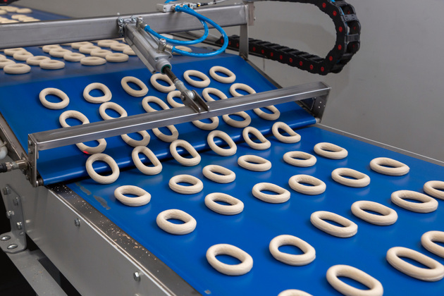Именно здесь стоит линия-гибрид из импортного и российского оборудования, филигранно раскатывающая тесто в рекордные сроки.