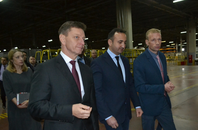 Губернатор, врио его заместителя по внутренней политике Игорь Моховиков и директор департамента инвестиций и внешнеэкономической деятельности областной администрации Денис Давыдов прошли по просторным цехам завода. Их сопровождали заместитель гендиректора предприятия Алексей Маликов и заместитель директора Онур Дулда.