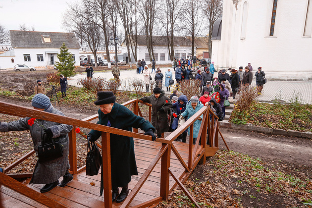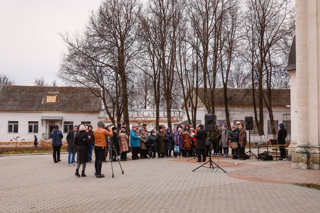 А после митинга люди возложили цветы к мемориальному кресту у монастырской стены.