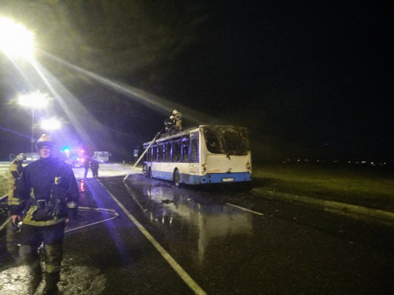 Сообщение о пожаре поступило в МЧС в 19.33. Автобус, стоявший на конечной остановке, на глазах у покупателей гипермаркета превратился в факел. Пожарные приехали оперативно. В 19.44 открытое пламя было ликвидировано, однако к этому моменту огонь полностью уничтожил салон. Причина пожара устанавливается.