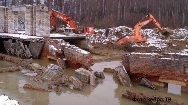 «При производстве работ первый экскаватор, заехав на насыпную площадку, стал проваливаться и в результате опрокинулся. Видимо, под насыпью были пустоты. Второй экскаватор делал насыпную дамбу и съехал в воду. Конечно, такие случаи не редкость при выполнении подобных работ, но подрядчик уверяет, что скоро технику извлекут, это тоже процесс непростой. Неприятно, что нарушаются сроки» - цитирует Зебра-ТВ городскую газету.