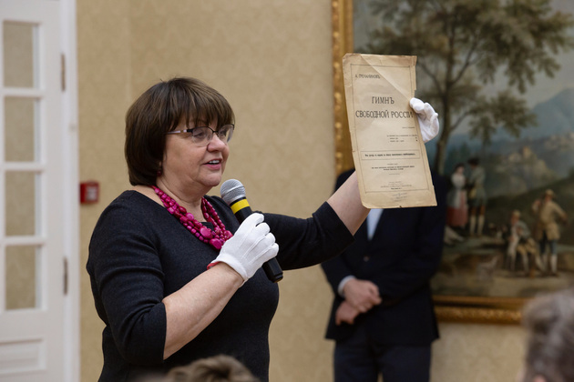 Гендиректор ВСМЗ Светлана Мельникова, надев белые перчатки, лично продемонстрировала небольшую нотную брошюру гостям музея. По ее словам, экспонату требуется реставрация и широкой публике он будет представлен в ноябре 2020 года на экспозиции, которую готовят музейщики к столетию «великого русского исхода» - исхода Белой армии под командованием генерала Врангеля из Крыма. Напомним, что с 12 по 14 ноября 1920 года Севастополь покинуло 150 кораблей и судов с военными и гражданским населением.