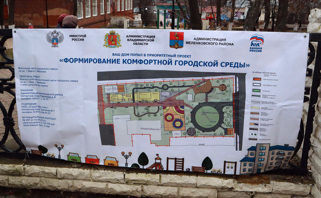 Немного портили впечатление обшарпанные стены меленковской средней школы, выходящие прямо на парк, и какие-то развалюхи эпохи дореволюционных Меленок. Виктор Гаврилов пообещал развалюхи убрать, а стенам школы придать достойный вид.