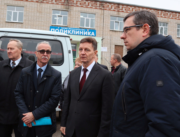 В Меленковской ЦРБ губернатора встречал директор облздрава Алексей Мозалёв и главврач Валерий Вишняков. Меленковскую ЦРБ ремонтируют уже три года – по мере поступления денег. На 10 млн рублей заменили крышу, установили пластиковые окна и двери. Теперь «осваивают» еще 3 миллиона. Губернатор прошел по больничным коридорам, мимо малярных дел мастериц, окрашивающих стены, «экологически чистой», как они заверили, краской.