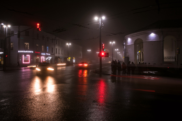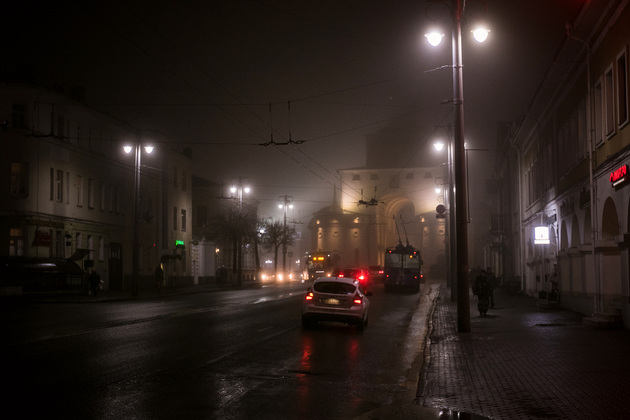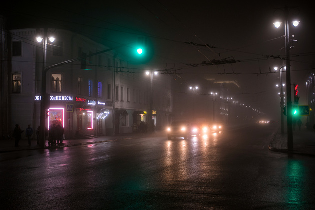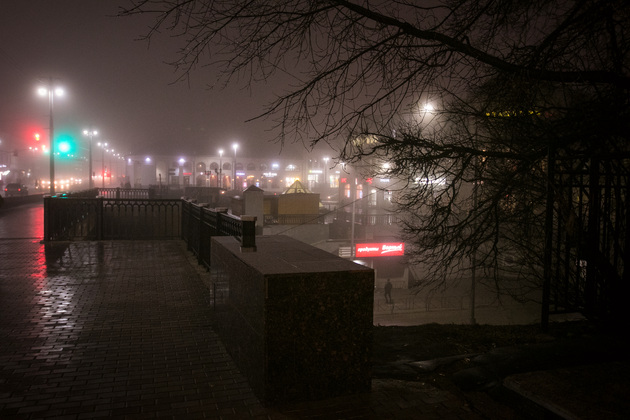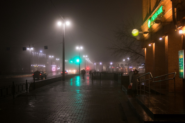 Вечерний туманный город в объективе нашего фотокорреспондента Владимира Чучадеева.