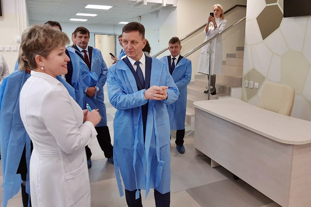 В ходе посещения поликлиники городской больницы №3 губернатору показали новое оборудование: УЗИ аппарат экспертного класса с допплерографическим датчиком и реабилитационное оборудование для пациентов неврологического отделения.
