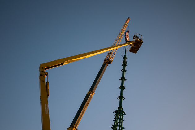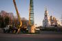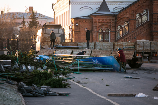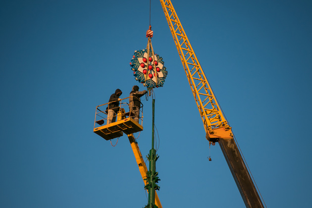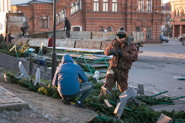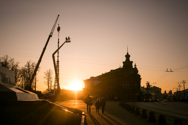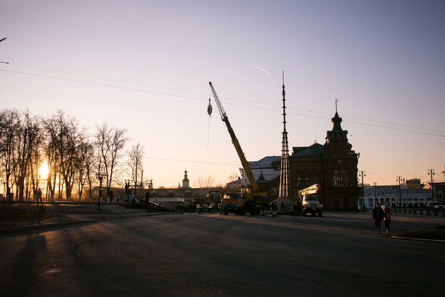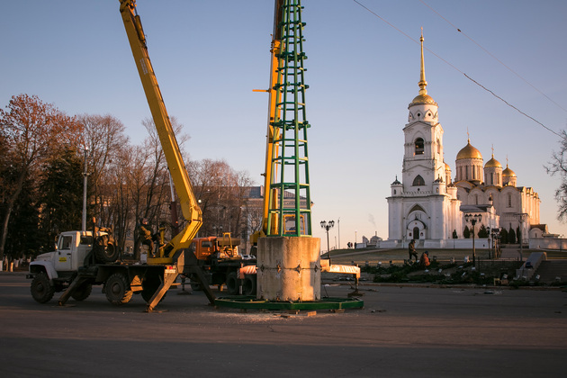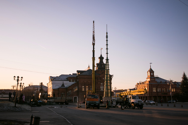 На Соборной площади областного центра начали устанавливать елку. Наш фотокорреспондент Владимир Чучадеев наблюдал за тем, как вырастает елка на одной из основных площадок столицы региона.