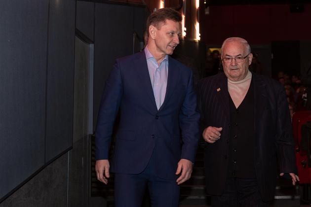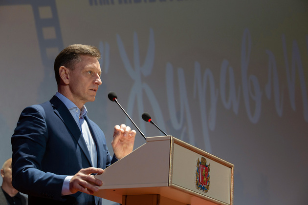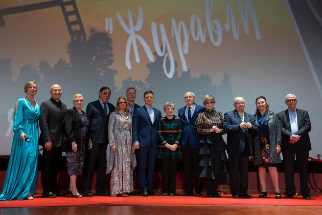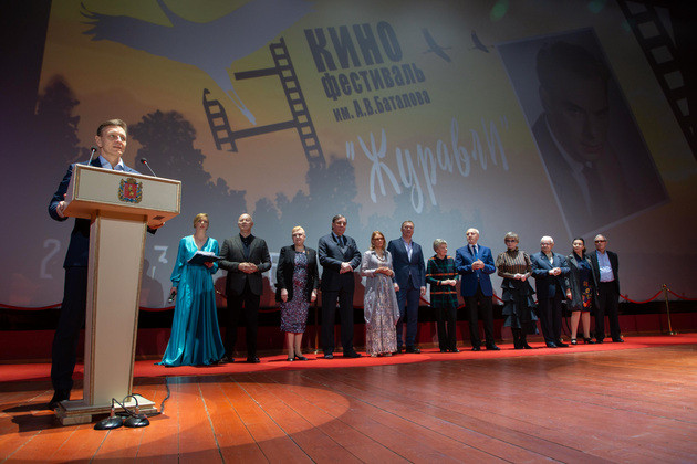 К ним на сцене присоединился и губернатор Владимир Сипягин. Он первым поздравил гостей и зрителей с кинофестивалем «Журавли» имени Алексея Баталова на его малой родине.