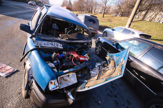 Авария впечатляющая: три автомобиля разлетелись на сто метров, ошмётки из железа и стекла разбросаны по всей дороге, из Доброго в центр — вяло ползущая пробка. Из трёх машин прилично выглядит только одна - «тойота» с довольно глубокой вмятиной на крыле. Ей досталось меньше всего. А вот «хюндай» с «иж» явно восстановлению не подлежат. У обоих снесено по четверти корпуса с правыми передними колёсами. Только у иномарки нутро салона осталось целым — с разлетевшейся по лобовому стеклу подушкой безопасности, а вот у «ижа» - никаких подушек и осколки конструкции глубоко внутри... Кстати, физически пострадал в этой аварии только водитель «иж», который, судя по всему, мчался в горку (в черте города!) на скорости 110 км в час и выехал на встречку, где и врезался в мирно ехавший по своей полосе «хюндай».