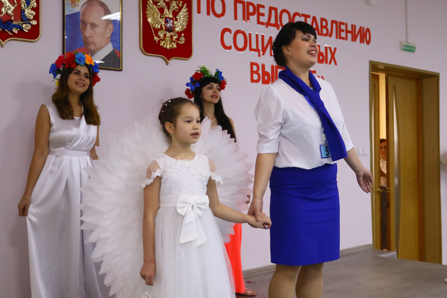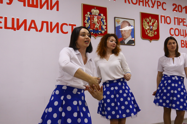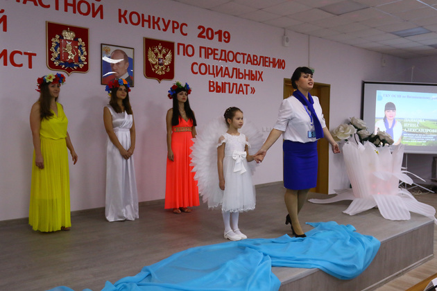 И вот - лучшие специалисты учреждений соцзащиты из Владимира, Александровского, Вязниковского, Гусь-Хрустального, Кольчугинского, Селивановского и Юрьев-Польского районов выходили на сцену и показывали творческое домашнее задание. Рассказывали о себе, своих семьях, увлечениях, нелегкой работе - в театрализованных выступлениях, видеороликах и песнях. У многих в качестве группы поддержки выступали дети, коллеги и даже начальники.