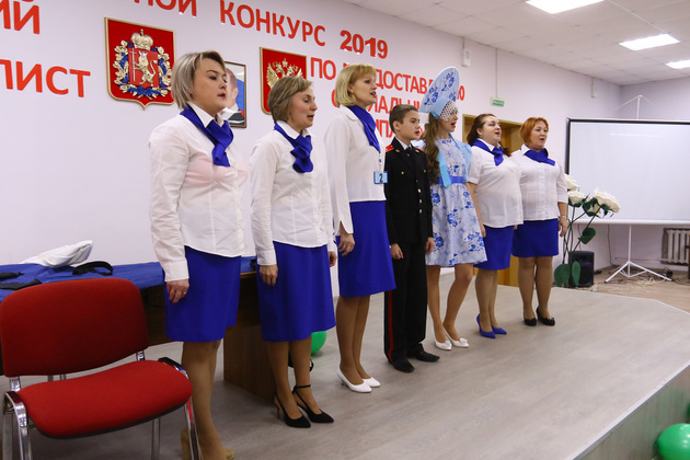 Татьяна Сараева из Гусь-Хрустального вместе с коллегами построила свое выступление на теме милосердия и терпения, без которых в клиентской службе работать невозможно: «Все мы по сути, как ни крути, близкие люди…», «если бы из окон видно было всех одиноких…»