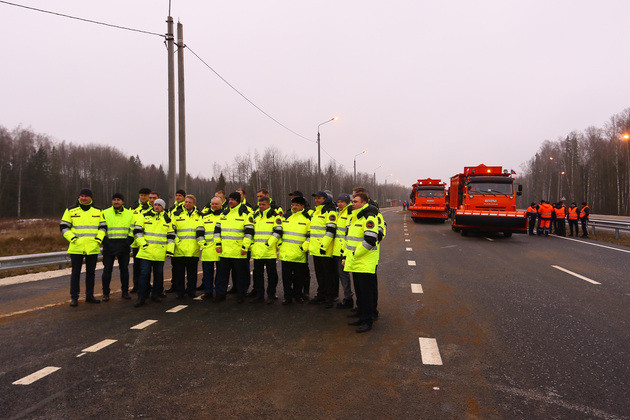 29 ноября на пустом спидвее – обходе деревни Бараки – играл духовой оркестр Судогодского дома культуры. Пожилые музыканты выводили старинные марши: ждали губернатора Владимира Сипягина. Именно он должен был открыть долгожданный автобан – новый участок дороги «Владимир-Муром-Арзамас». А пока новая дорога была перекрыта тяжелой автотехникой.