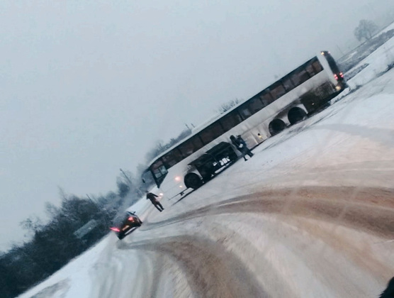 30 ноября на дороге Юрьев-Польский - Кольчугино развернуло и вынесло на обочину автобус, следовавший из Юрьева-Польского в Москву. Пострадавших нет.
