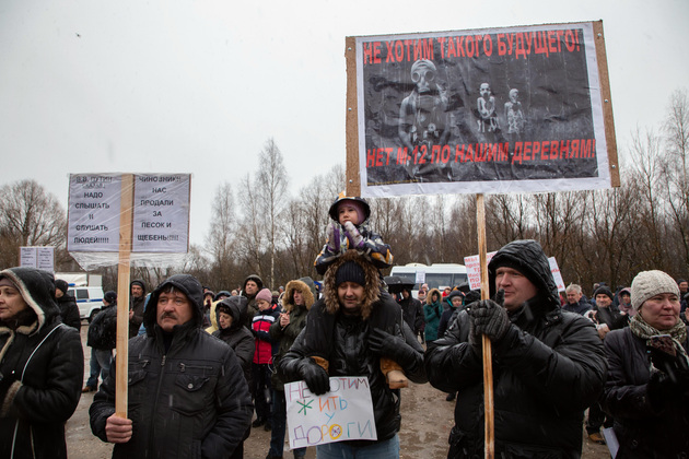 Поэтому более 500 человек и собрались высказать свой протест, как это значилось на плакатах, против "дорожного беспредела". Люди требовали оставить им право на их собственные дома и чистый воздух.