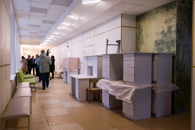 Также на областные деньги (82 млн рублей) сейчас идет реконструкция здания городской поликлиники. Как пояснила Елена Кудряшова, в Юрьев-Польской ЦРБ будет «бережливая поликлиника». Новая модель позволит сократить время ожидания приёма за счёт улучшения медицинской логистики и внедрения системы электронной очереди. Для удобства пациентов в холле установят электронное табло с расписанием врачей, инфоматы для записи к специалистам.