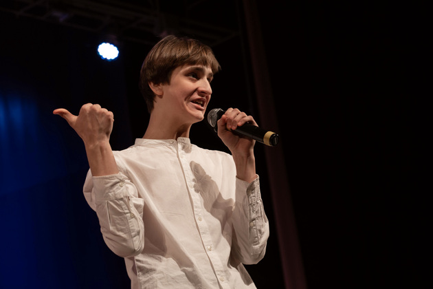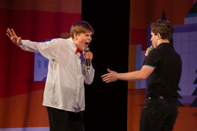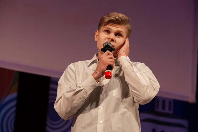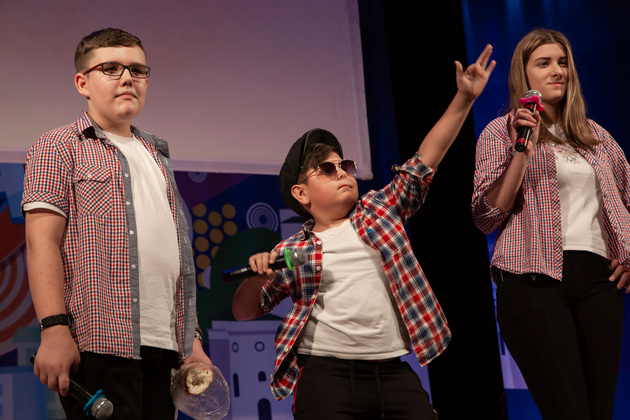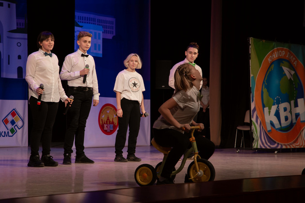 Игру остроумно вел неутомимый Денис Супруненко, известный наставник юморной «поросли». Все команды были разбиты на три блока — два детских и один студенческий. Итого получилось два с половиной часа детско-юношеского юмора!