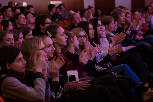 Жюри и болельщики остались очень довольно увиденным. Пока подводили итоги, все участники игры огромной толпой заполнили сцену до отказа и потренировались в импровизационной «Разминке».