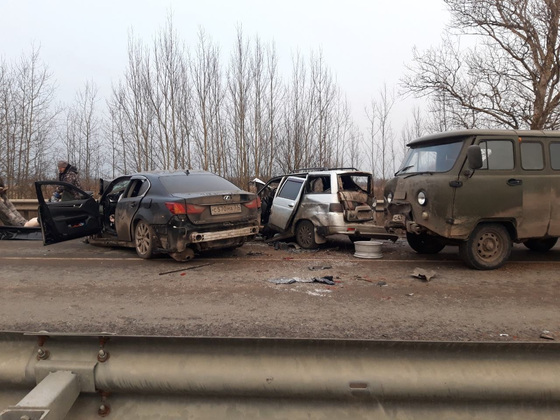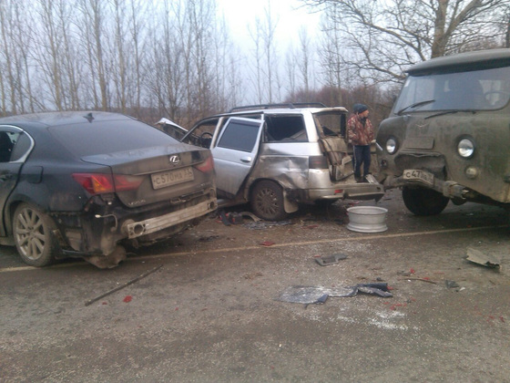"По предварительной информации водитель автомобиля "Лексус" (1960 г.р.) выехал на полосу, предназначенную для встречного движения, где произошло столкновение с автомобилями "Ниссан" ( водитель 1987 г.р.) и "ВАЗ" (водитель 1991 г.р.). Также с автомобилем "ВАЗ", попавшим в ДТП, столкнулся ехавший в попутном направлении автомобиль "УАЗ"." - говорится в официальном сообщении полиции.