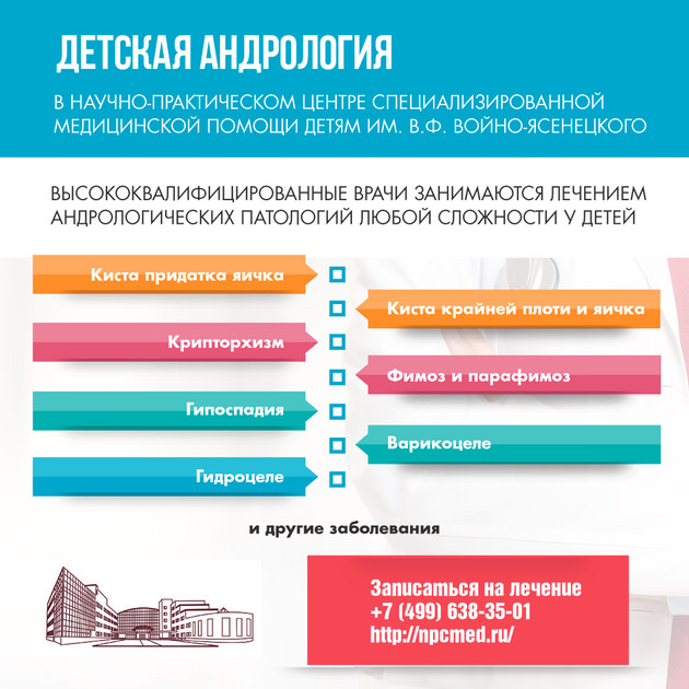- Затрагиваются репродуктивные, физиологические и психологические аспекты жизни мальчика, юноши, мужчины, – поясняет он – Главная задача родителей – уделить проблеме особое внимание и провести лечение ребенка до наступления 4-летнего возраста, то есть до момента, когда он самостоятельно начнет осознавать наличие физиологических отклонений или же подвергаться насмешкам со стороны сверстников в детском саду, школе, среди друзей.