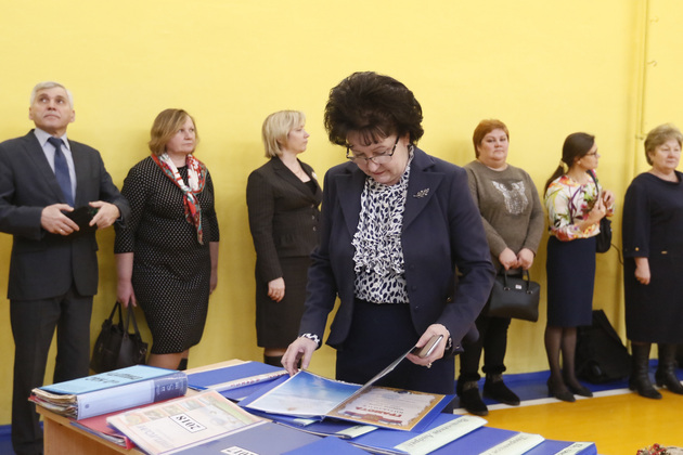 Директор Лухтоновской школы-интерната Елена Виноградова показывает в деле ценные приобретения школы по нацпроекту.