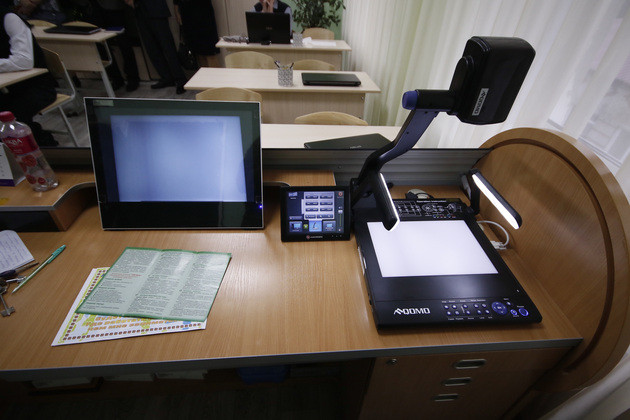 Первая супер-новинка - учебный мультимедиа-комплекс для классной комнаты, который здесь просто называют «умным классом». В нем создано место педагога с интерактивной проекционной системой (очень удобной для коррекционных занятий, при которых так важно демонстрировать детям дидактические материалы). Система проецирует все нужные изображения на интерактивную доску - по сути, большой сенсорный экран компьютера. У каждого ученика на столе — ноутбук. Ребята хорошо управляются с этой электроникой. Возможностей у этого «умного класса» так много, что учителя еще сами их изучают, чтобы использовать как можно лучше.