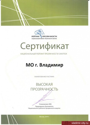 Владимирская область в региональном рейтинге прозрачности закупок-2019 оказалась на 24 месте, Владимир - на 30 месте среди муниципалитетов.