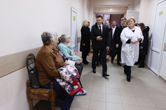 И. о. главврача ЦРБ Елена Роганова показала губернатору, как идет ремонт в поликлинике, здание которой построено в 1953 году, рассказала о новом оборудовании, поставленном в медучреждение, о ходе цифровизации больницы.