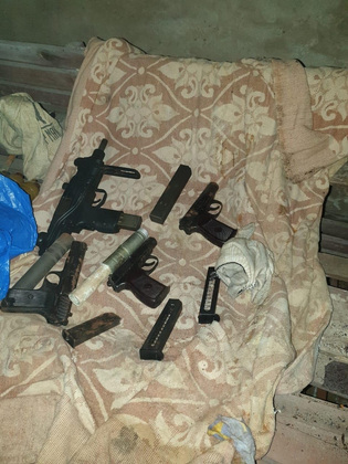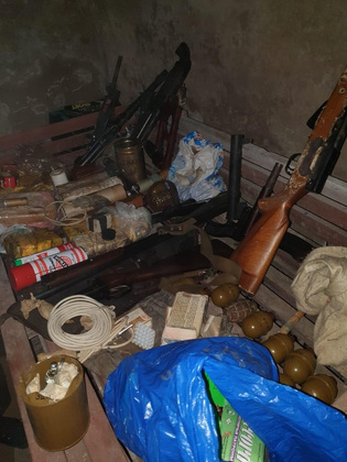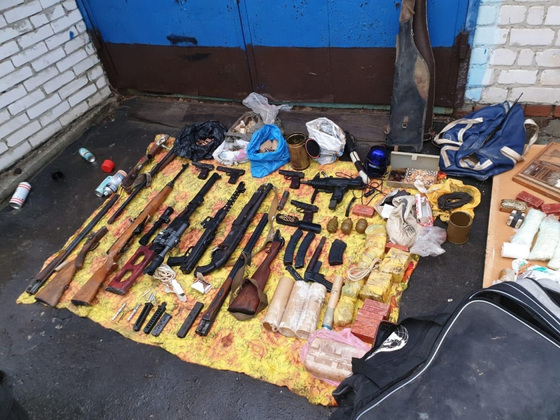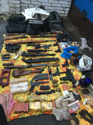 В ходе обыска в четырех гаражных боксах был изъят солидный арсенал. В УМВД России по Владимирской области уточняют список найденного в схроне: винтовка Симонова, два карабинаи, пистолет-пулемёт «Узи», четыре пистолета, три охотничьих ружья, 13 гранат и более чем 2000 патронов различного калибра. Также изъяты 44 килограмма веществ, похожих на взрывчатые, сигнальный пистолет, 15 капсюль-детонаторов, 15 электродетонаторов, СВУ, две осветительные шашки, три имитационные шашки и 20 метров огнепроводного шнура.