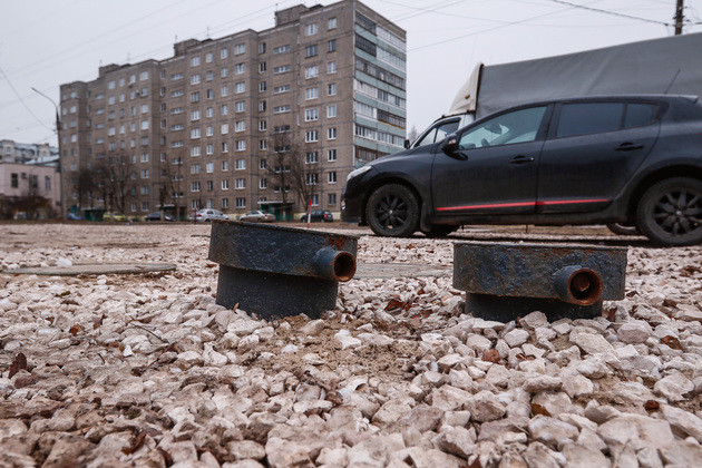 Еще один пункт осмотра, и снова незаконное сооружение. Автопарковка у дома №19г на ул. Безыменского. В этом году там проводилась реконструкция сетей, «воздушку» убрали под землю. Восстановили благоустройство, сделав газон. Но жители, не дожидаясь весны, засыпали площадку щебнем и организовали там парковку. Причем машины паркуются на месте колодцев управления запорной арматурой. Это видно по следам протекторов. Из-за ограничения доступа к колодцам управления потеряна возможность точного определения локализации повреждений на сетях. А из-за этого в случае аварии придется отключить от теплоснабжения не 2-3 дома, а весь микрорайон. И тратить время на поиски места повреждения, что опять же влечет увеличение продолжительности пребывания потребителей без тепла и горячей воды.