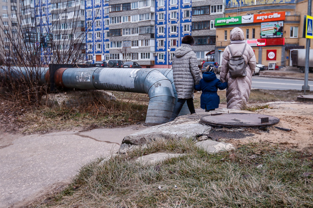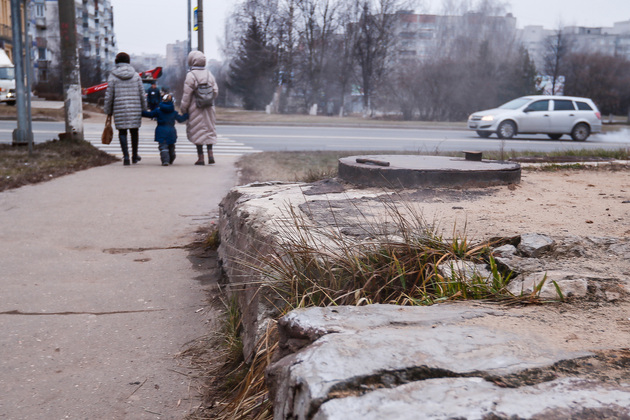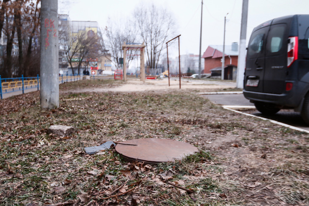 Поэтому детским площадкам уж совсем не место на объекте повышенной опасности. Но у нас даже их оборудуют прямо над теплопроводом. Например, у дома по адресу Безыменского, 3 на магистральной тепловой сети установлена детская площадка. Рядом, так же вдоль магистрального трубопровода, - автостоянка и еще одна детская площадка.